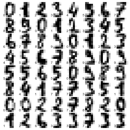 digits.keys()dict_keys(['target', 'data', 'target_names', 'DESCR', 'images'])