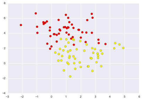 ax.set_ylim(ylim)plt.scatter(X[:, 0], X[:, 1], c=y, s=50, cmap='autumn')