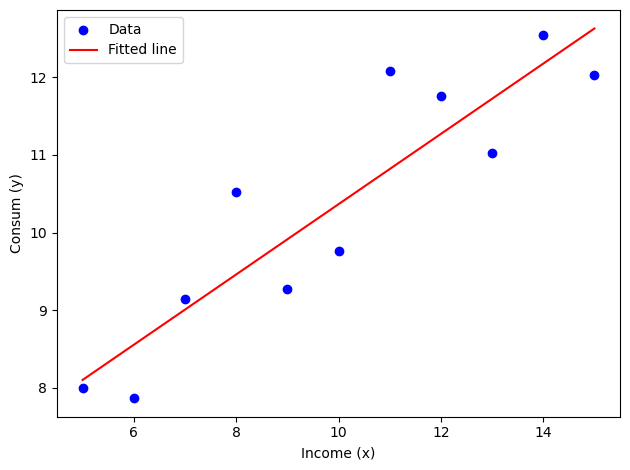 y (Consum):y~5 + 0.5x + e, e ~ N(0, 1)