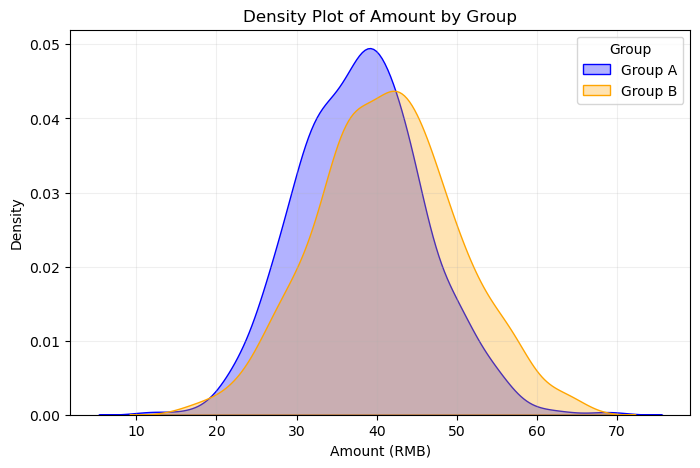 为此,门店计划进行为期一个月的测试,在此期间,将顾客随机分为两组,分别接受 A 或 B 方案。管理层希望通过 A/B 测试,判断哪种方案能更有效地提升人均消费金额。