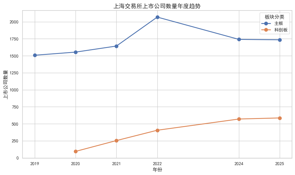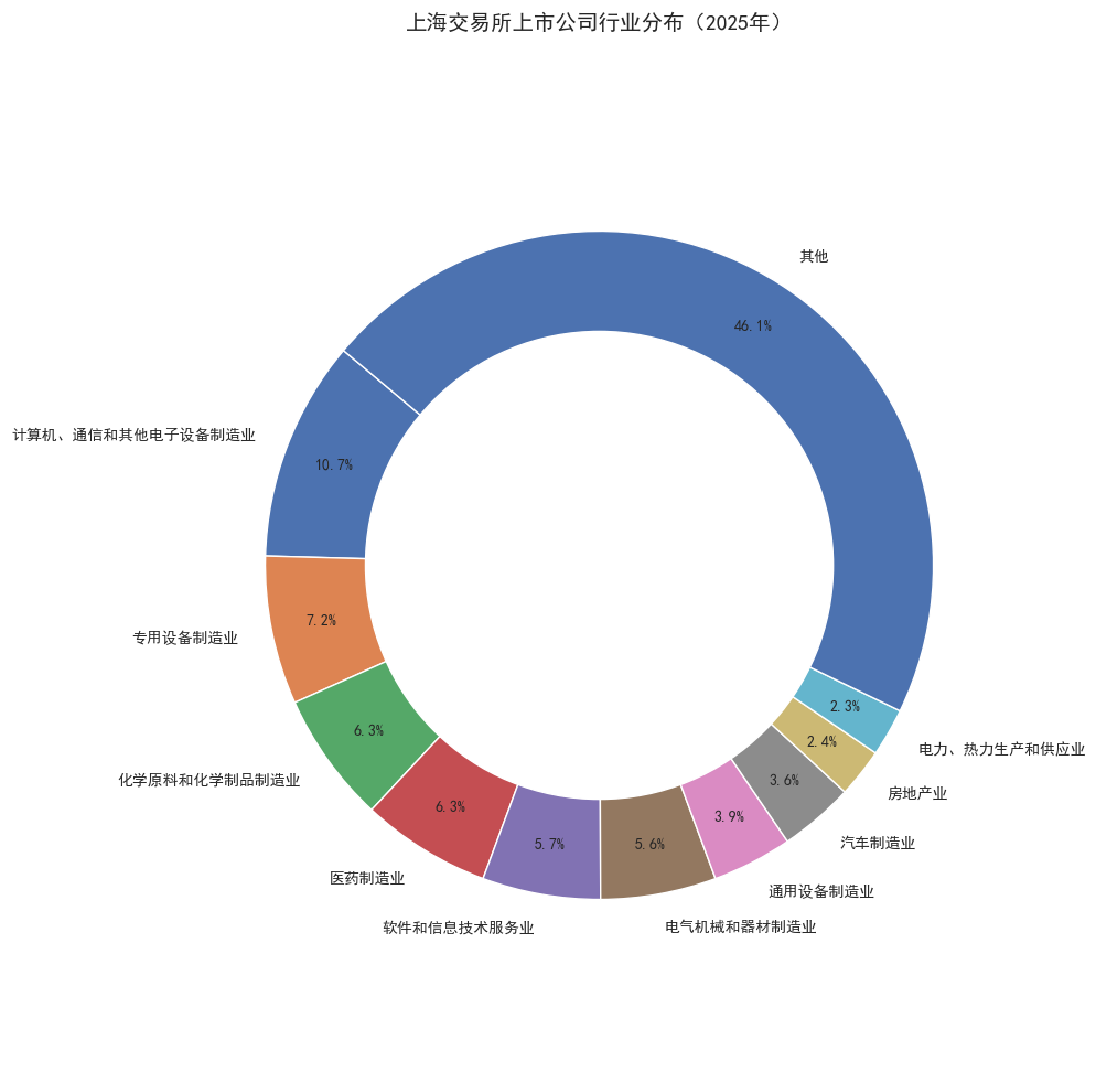 plot_pie(sh_top10, '上海交易所上市公司行业分布', latest_year_sh)