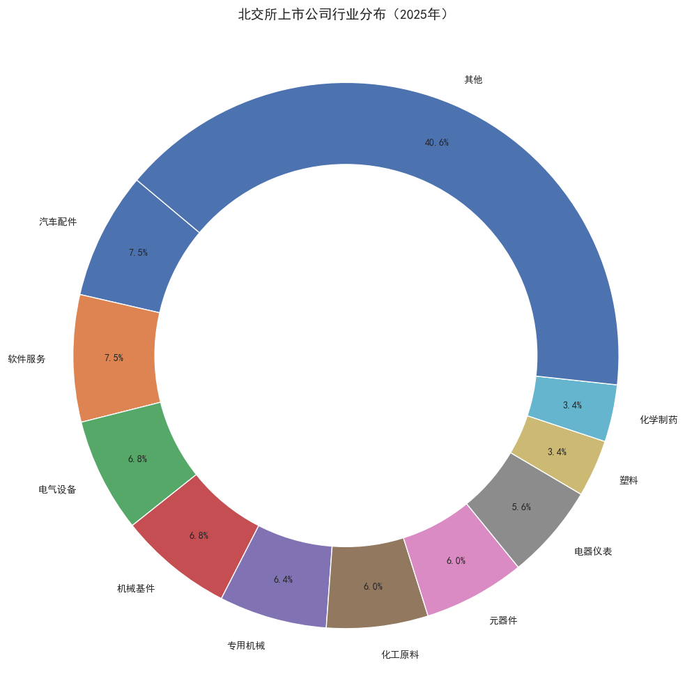 plot_pie(bj_top10, '北交所上市公司行业分布', latest_year_bj)