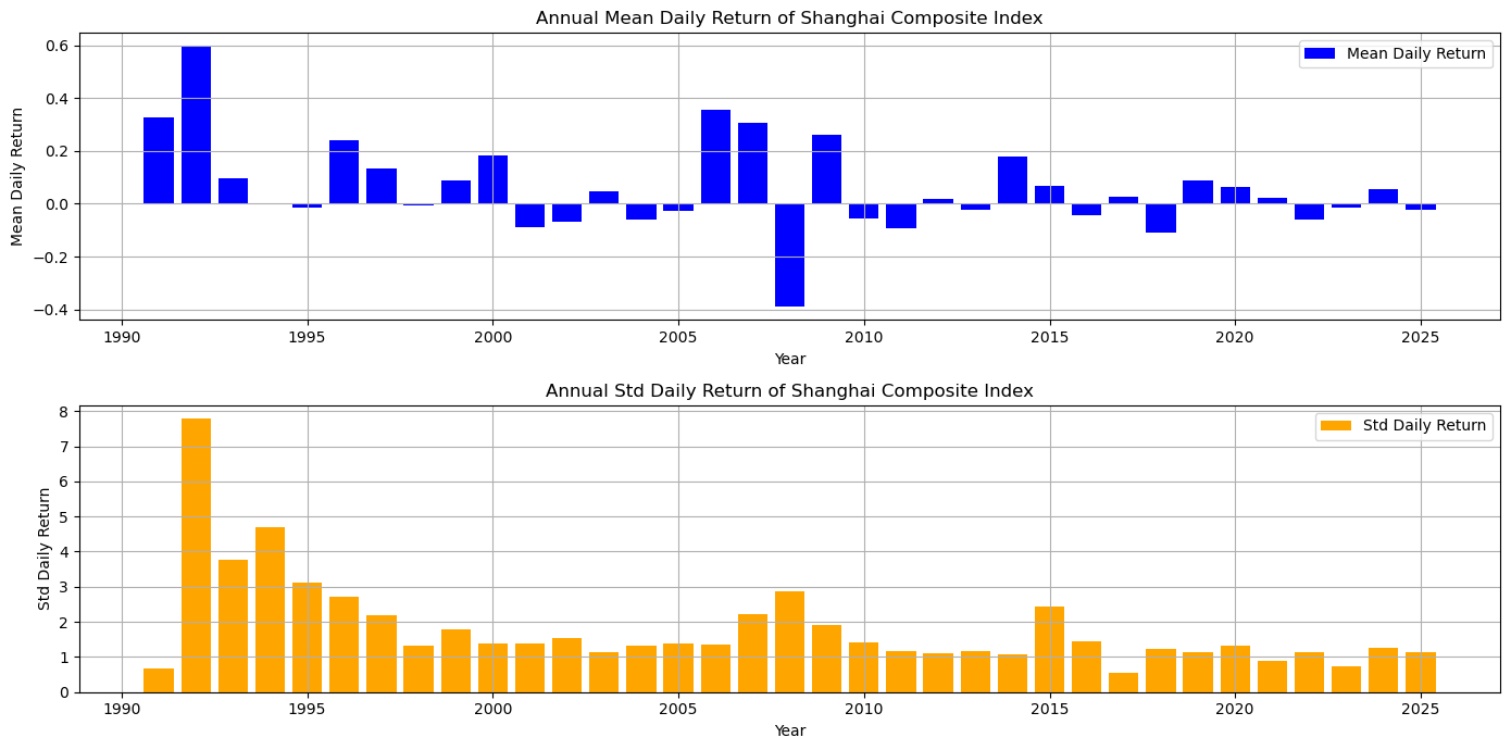 annual_stats.columns = ['Year', 'Mean Daily Return', 'Std Daily Return']