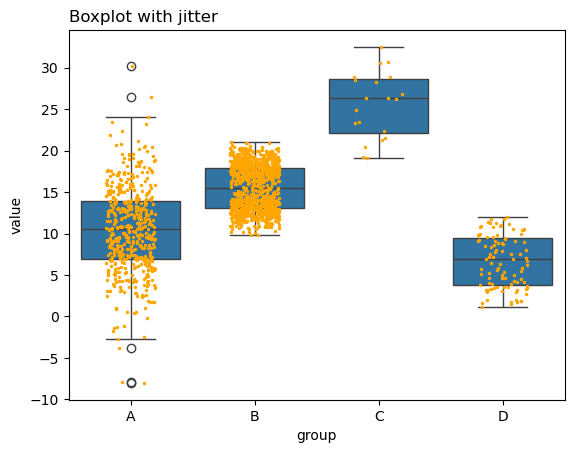 plt.title("Boxplot with jitter", loc="left")