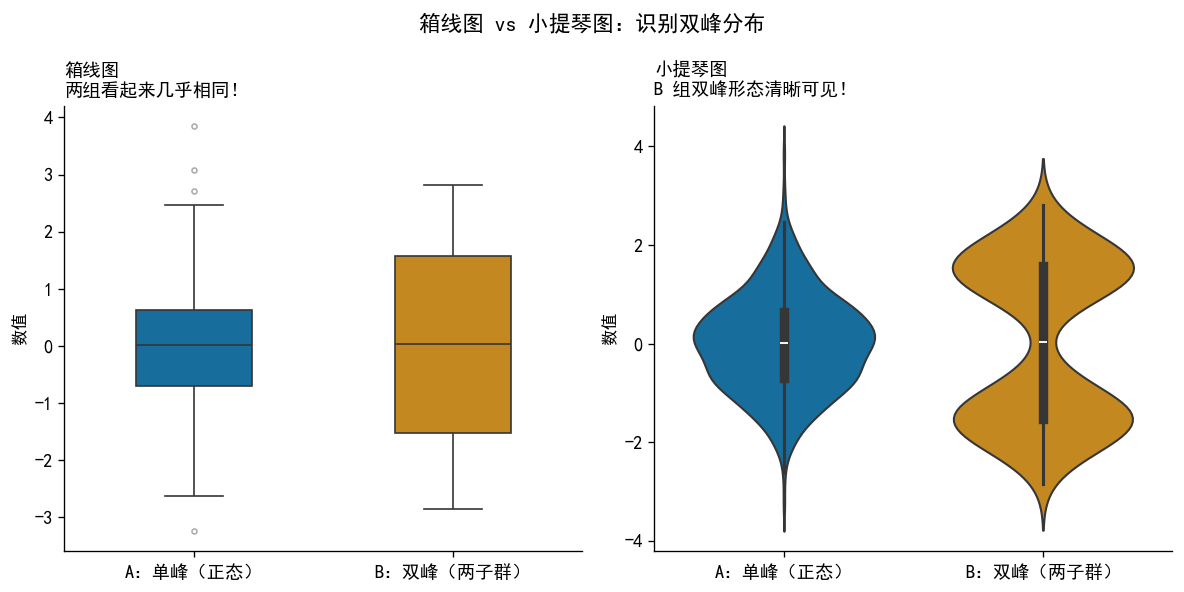 axes[1, 0].text(-0.2, 0.5, '小提琴图', transform=axes[1,0].transAxes,