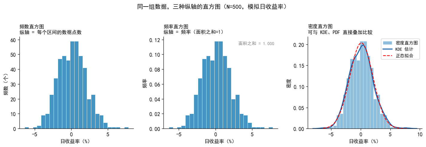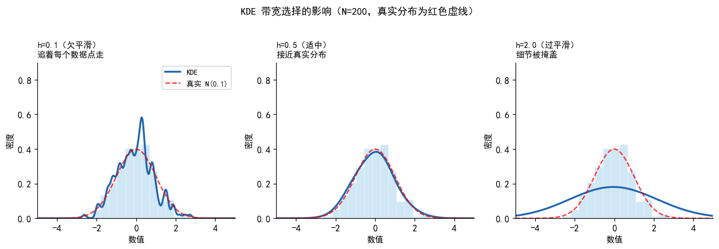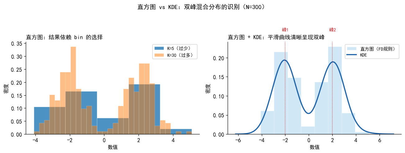 axes[0, 0].text(-0.2, 0.5, '直方图\n+ KDE', transform=axes[0,0].transAxes,