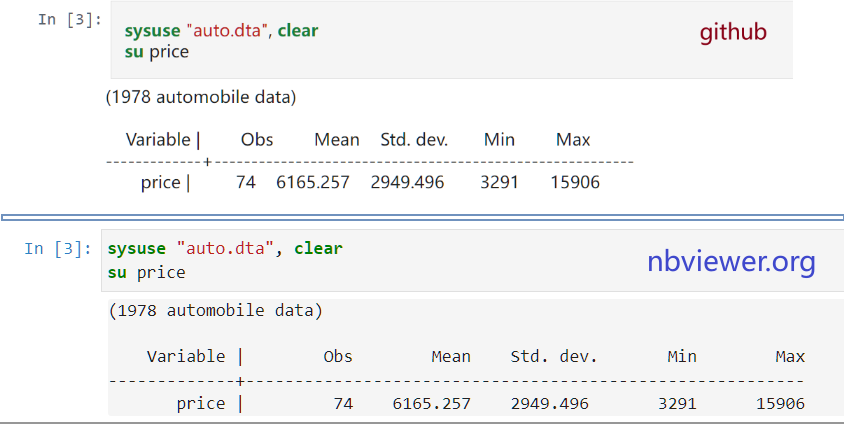 下图对比了 GitHub 渲染 和 nbviewer 预览 的差异: